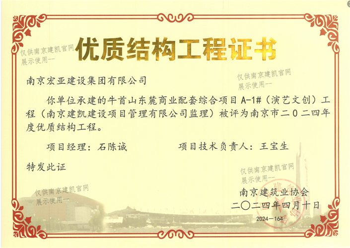 南京市二0二四年度優(yōu)質(zhì)結構工程(牛首山東麓商業(yè)配套綜合項目A-1#(演藝文創(chuàng ))工程)