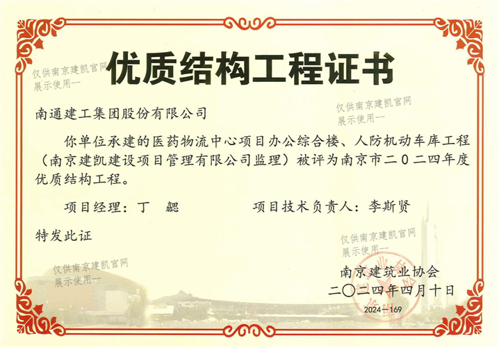 南京市二0二四年度優(yōu)質(zhì)結構工程(醫藥物流中心項目辦公綜合樓、人防機動(dòng)車(chē)車(chē)庫工程)