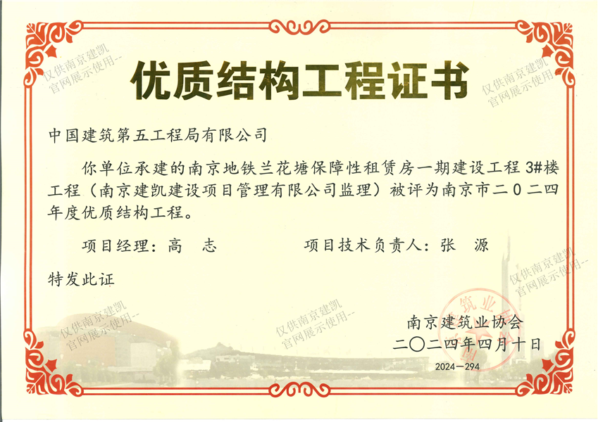 南京市二0二四年度優(yōu)質(zhì)結構工程(南京地鐵蘭花塘保障性租賃房一期建設工程3#樓工程)