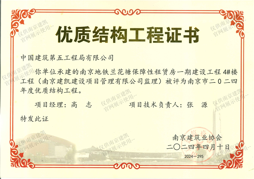 南京市二0二四年度優(yōu)質(zhì)結構工程(南京地鐵蘭花塘保障性租賃房一期建設工程4#樓工程)
