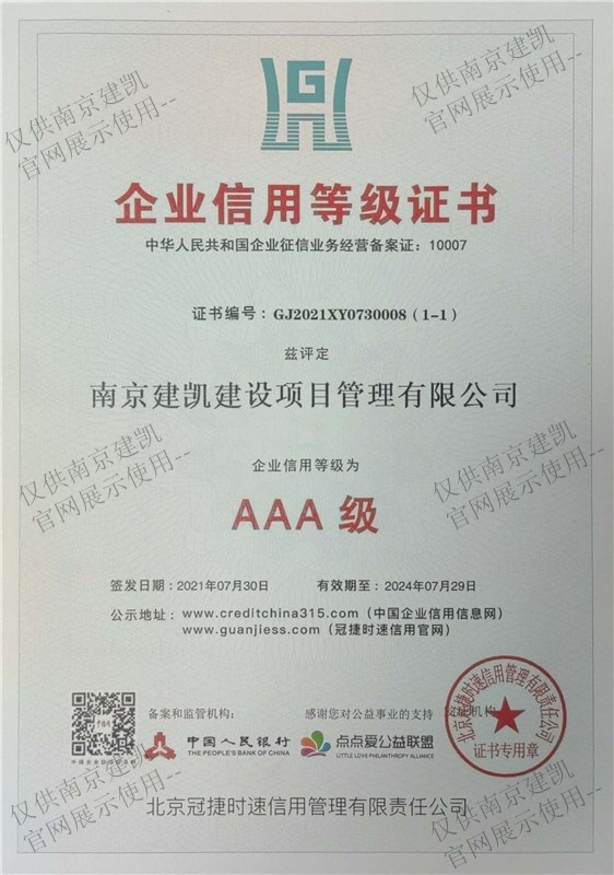 工程造價(jià)咨詢(xún)企業(yè)信用“AAA”等級證書(shū)
